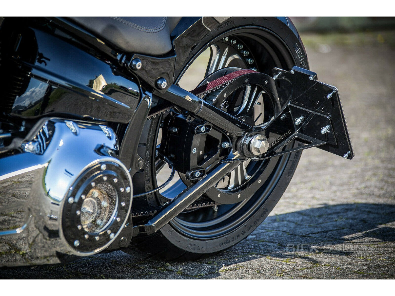 Diese seitliche Kennzeichenhalterung wurde speziell für Softail Rocker und Breakout Modelle bis einschließlich 2017 entwickelt. Dank des kompakten Designs lässt sich Ihr Kennzeichen sauber am Rahmen befestigen, ohne dass eine separate Grundplatte benötigt wird. Die mattschwarze Oberfläche sorgt für eine nahtlose Optik. Alle notwendigen Montageteile für eine einfache Installation sind im Lieferumfang enthalten. Eine maßgeschneiderte Lösung, die die klaren Linien Ihrer Harley bewahrt und gleichzeitig alle gesetzlichen Anforderungen erfüllt.