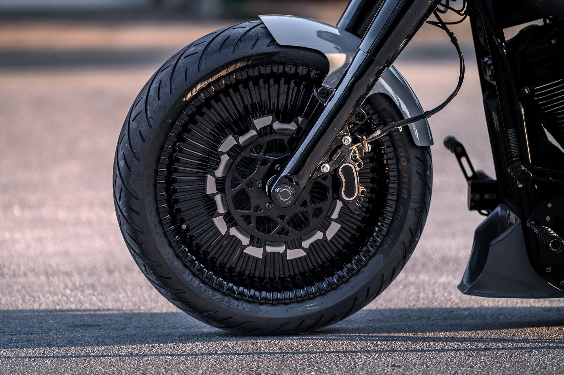Engineered for aggressive 23" front wheel conversions on 2018+ Softail Fat Boy Milwaukee 8 models, this steel fender accommodates 130/60 23" tire specifications with precision fitment. Spanning 457mm in length, the fender features 2mm steel construction with exceptional torsional rigidity for superior handling stability. Advanced 3D laser-cutting technology delivers exacting dimensional accuracy and optimal tire clearance geometry. The sculpted profile complements modern Fat Boy proportions while maintaining structural integrity under dynamic conditions. Pre-drilled mounting holes simplify installation; a separate mounting kit (S8-8001400-0) is required. Supplied unpainted for custom finish integration. German-manufactured precision for discerning builders pursuing bold aesthetic transformations.
