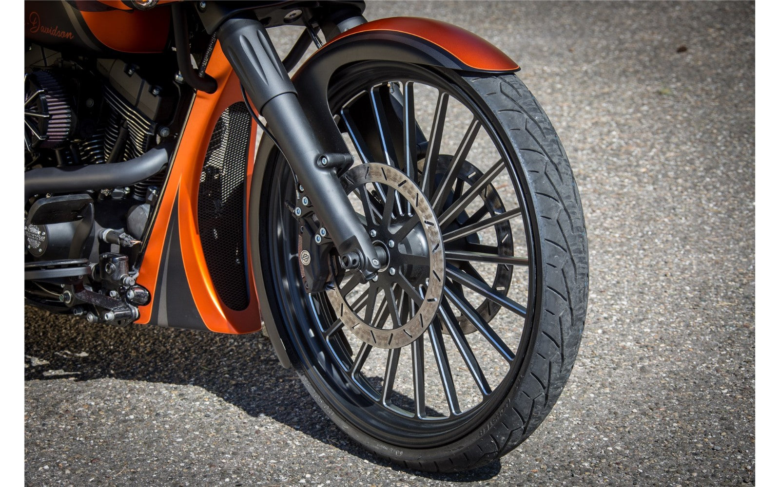 Rick's chin spoiler transforms aerodynamics for 2014-up Touring models with precision engineering. Built from durable high-strength GRP composite reinforced with laminated steel attachment points, this spoiler handles sustained highway conditions and demanding rides. Specifically designed for custom builds featuring modified steering geometry and extended fork rake, it integrates without compromise. The rigid construction reduces wind turbulence while maintaining impact resistance. Supplied complete with all necessary hardware and comprehensive installation documentation, this spoiler combines functional wind management with commanding visual presence for touring riders seeking performance upgrades.