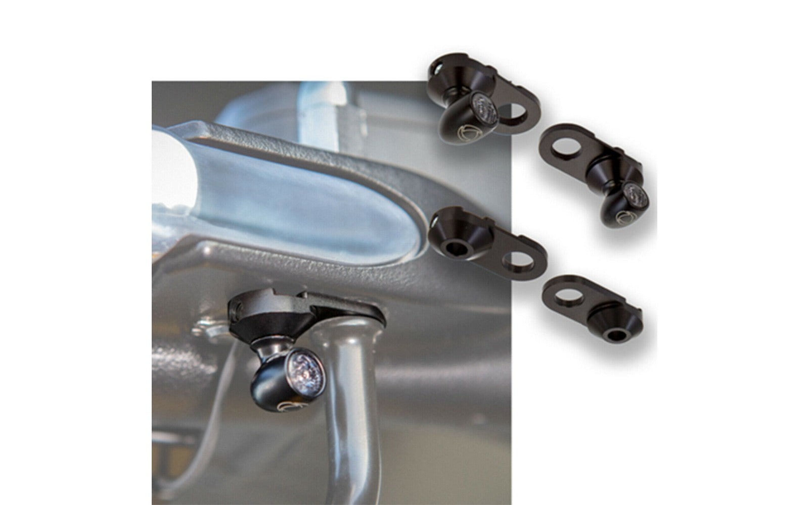 Mount your Kellermann Atto indicators with precision using this universal aluminum holder from Rick's Motorcycles. Precision-milled and black anodized for durability, these brackets accommodate TwinCam engines from 2000 onward and other models featuring M5-threaded Kellermann Atto indicators. Each pair arrives complete with installation hardware, ready for immediate fitment. Choose your configuration with or without integrated indicators to match your specific setup requirements.