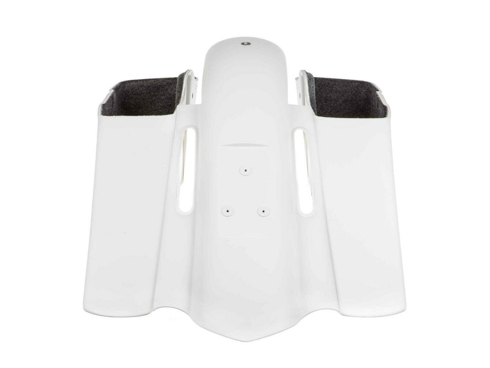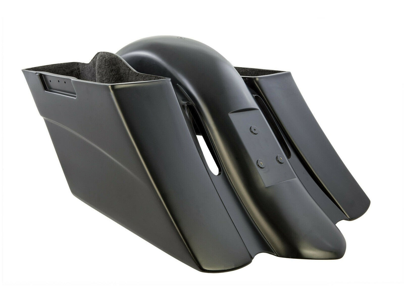 Transform your 2014+ Touring model with Rick's "Rick Rod" rear conversion kit, engineered to push the rear 8 inches back and lower it 4.2 inches for commanding road presence. This complete system features a durable GRP rear fender, dual saddlebags with integrated protective guards, and fabric-lined interiors - all designed to work with existing stock mounting hardware. Preserve your original Harley-Davidson accessories, sissybar, luggage rack, and saddle without any modifications required. The fender includes cutouts for CVO taillights up to 2013 models. Arrives unpainted, ready for your custom color application. German-crafted engineering meets American touring tradition.